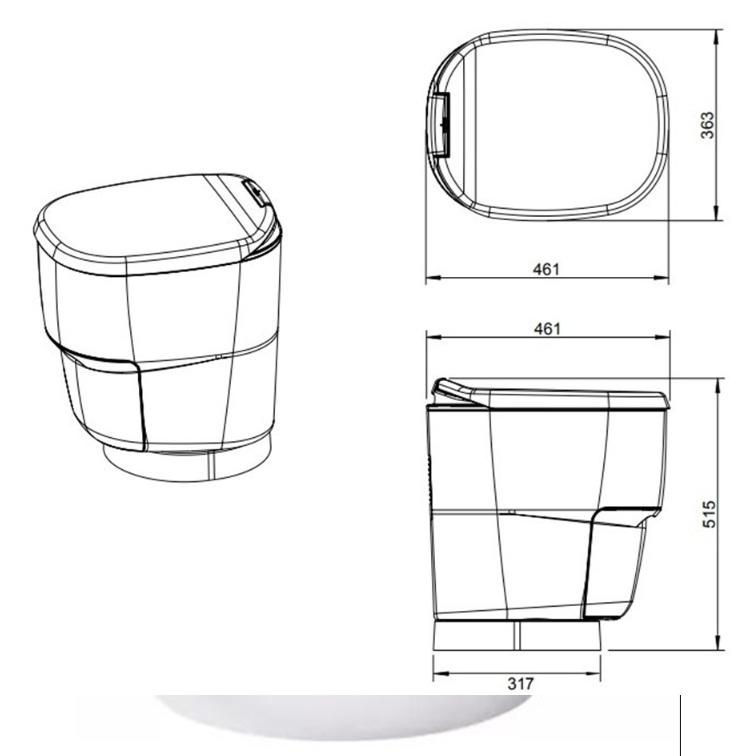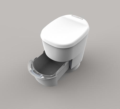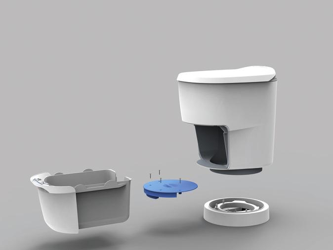 Clesana C1 – inodoro sin agua con base redonda para colocación libre.