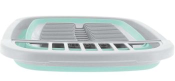 Este escurridor de gran capacidad es perfecto para espacios reducidos. Le permite secar sus platos, vasos, cuencos y tiene un espacio dedicado para cubiertos. Su composición de plástico y silicona te permite doblarlo, una vez seca tu vajilla, para ahorrar espacio.