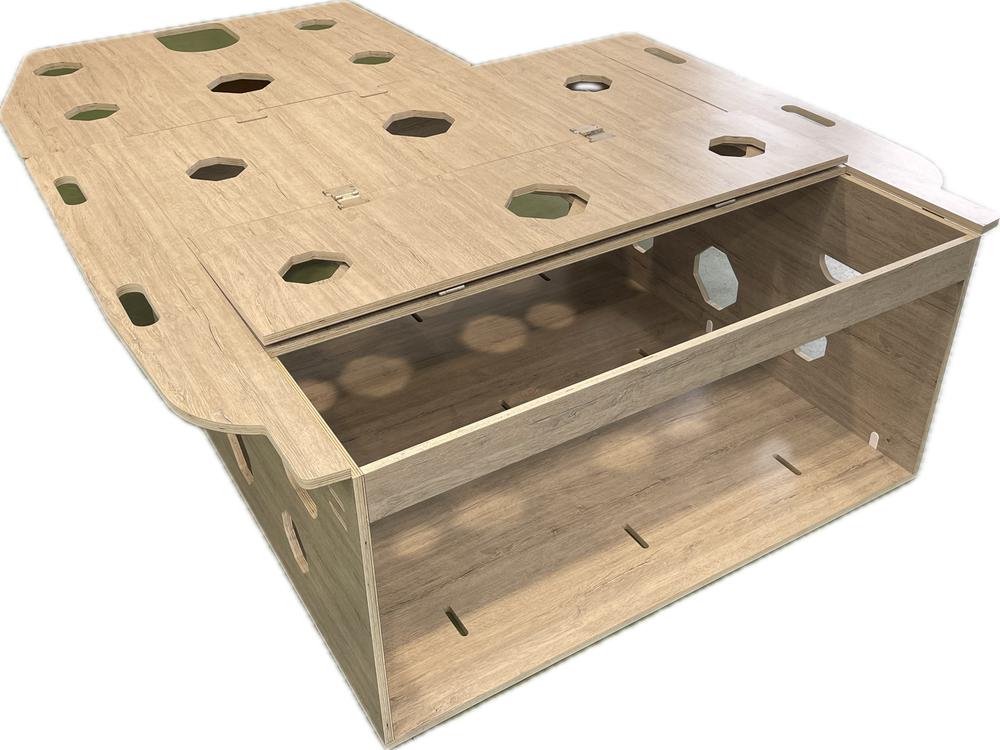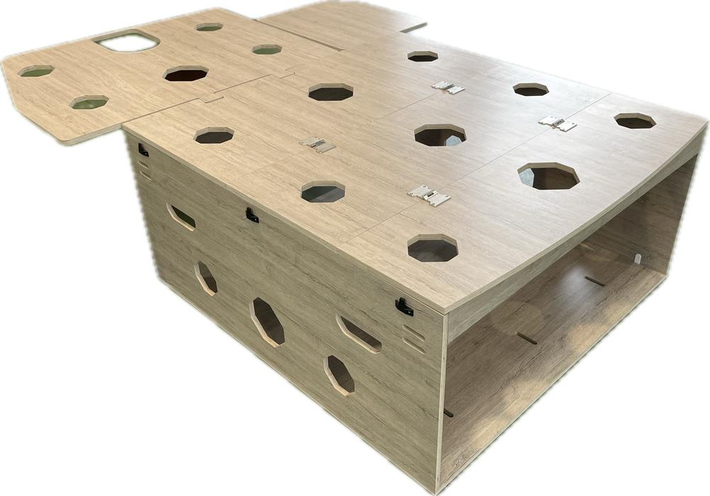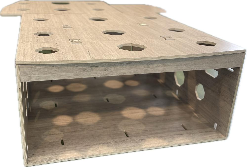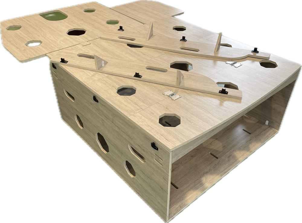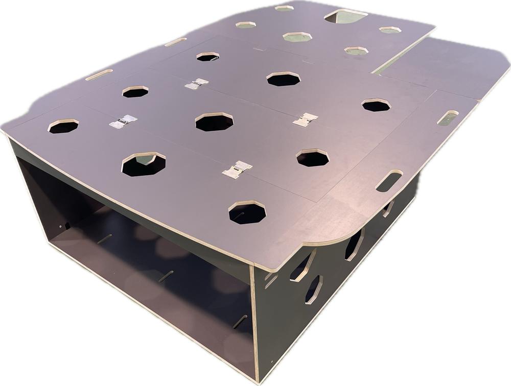 – Estructura en madera de alta calidad, fabricada en contrachapado de chopo aplacado en HPL, esto hace que sea muy ligero y a su vez muy resistente.