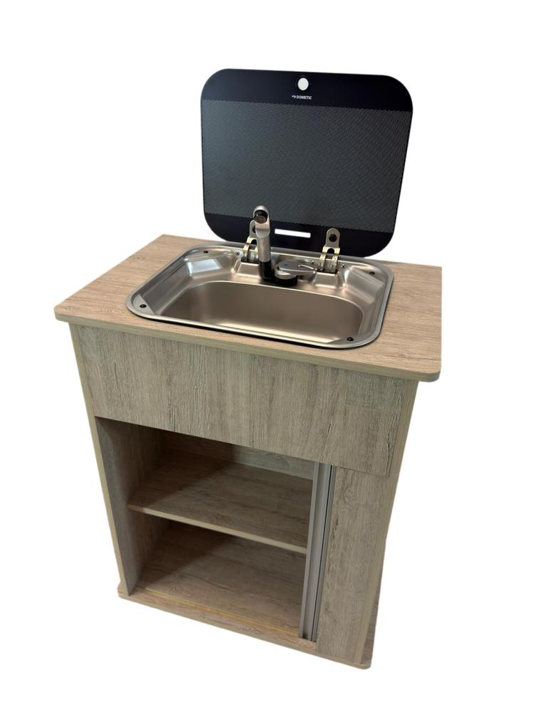 Mueble fregadero portátil tapa cristal