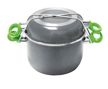 El juego de 7 piezas que consiste en: 3 ollas Ø 16, 18 + 22 cm, 2 tapas, 1 asa.