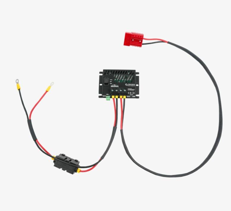 Sistema de gestión de energía Clesana que combina las funciones de un relé y un cargador CC/CC.