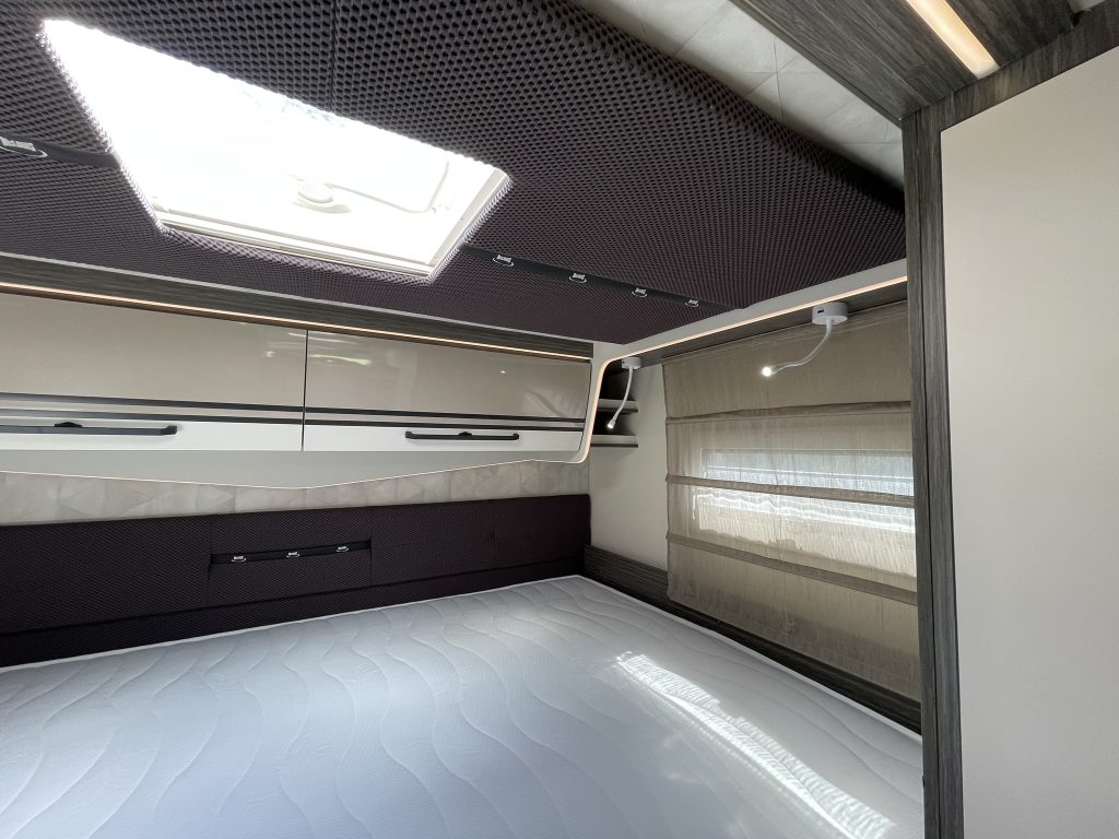 • Grosor suelo: 54 mm •Grosor techo y paredes: 30 mm •Techo exterior de fibra de vidrio •Paredes interiores/exteriores de fibra de vidrio •Zona inferior suelo chasis cubierta en fibra de vidrio”