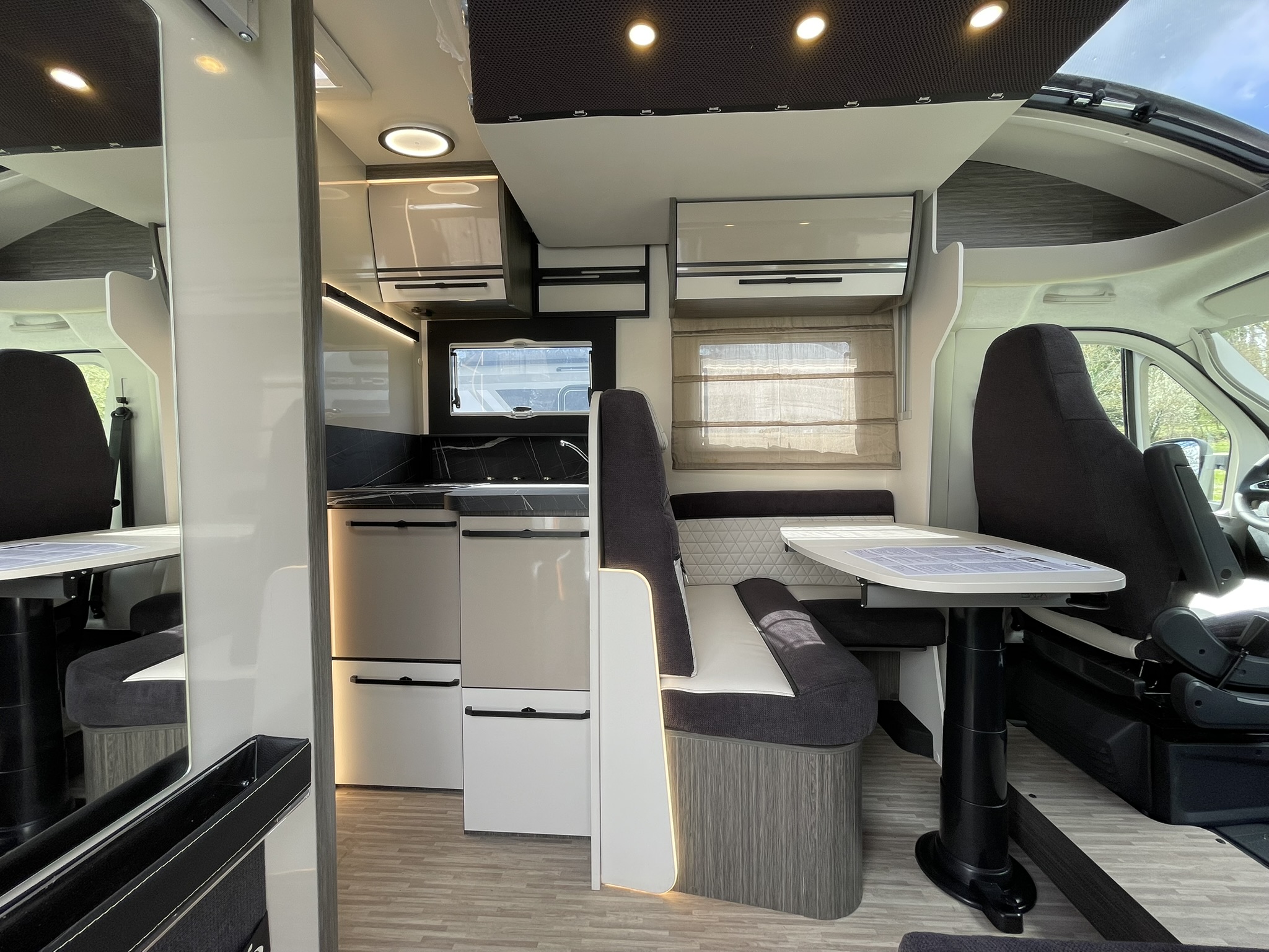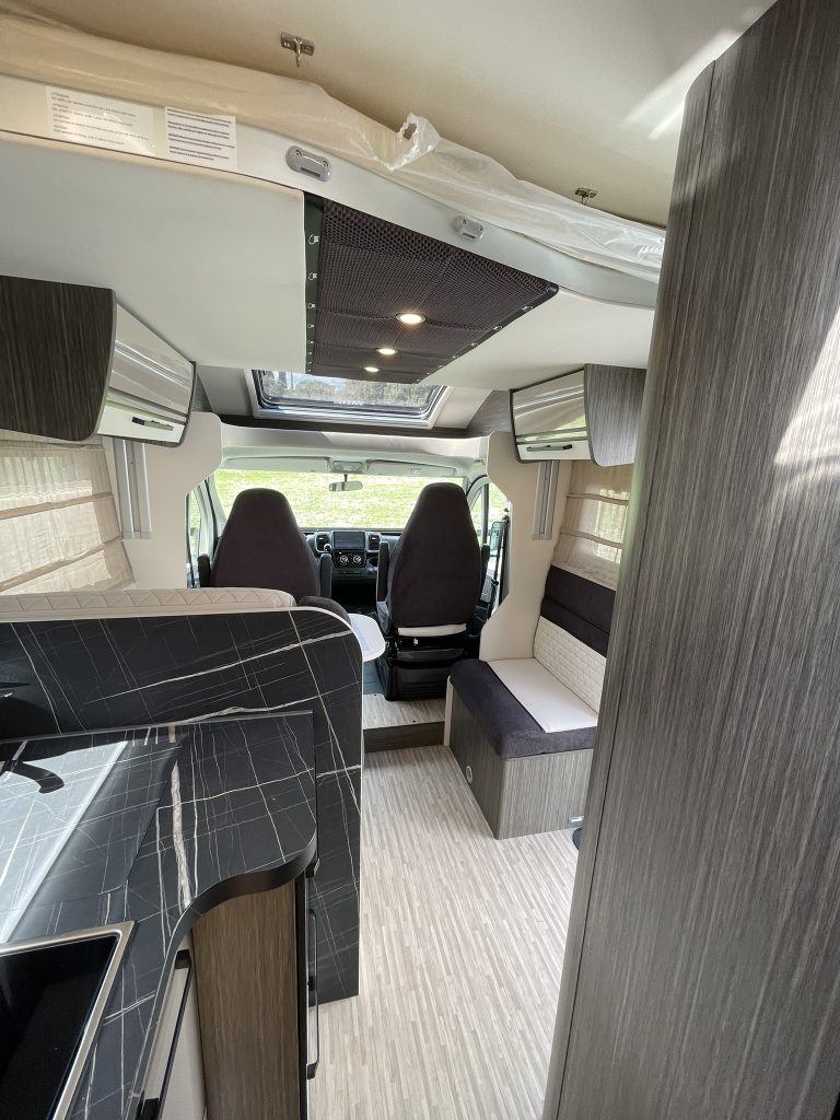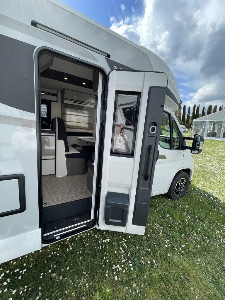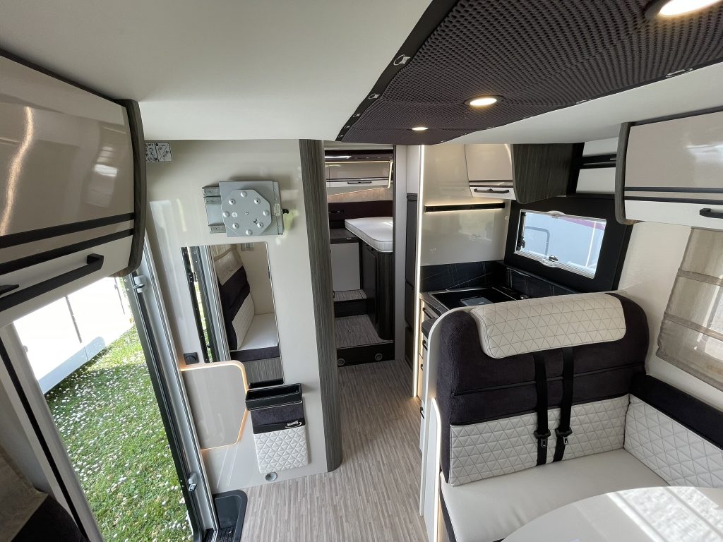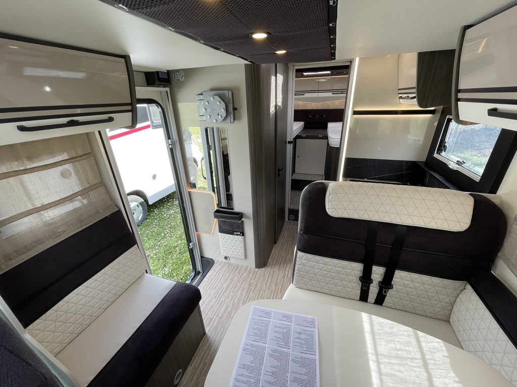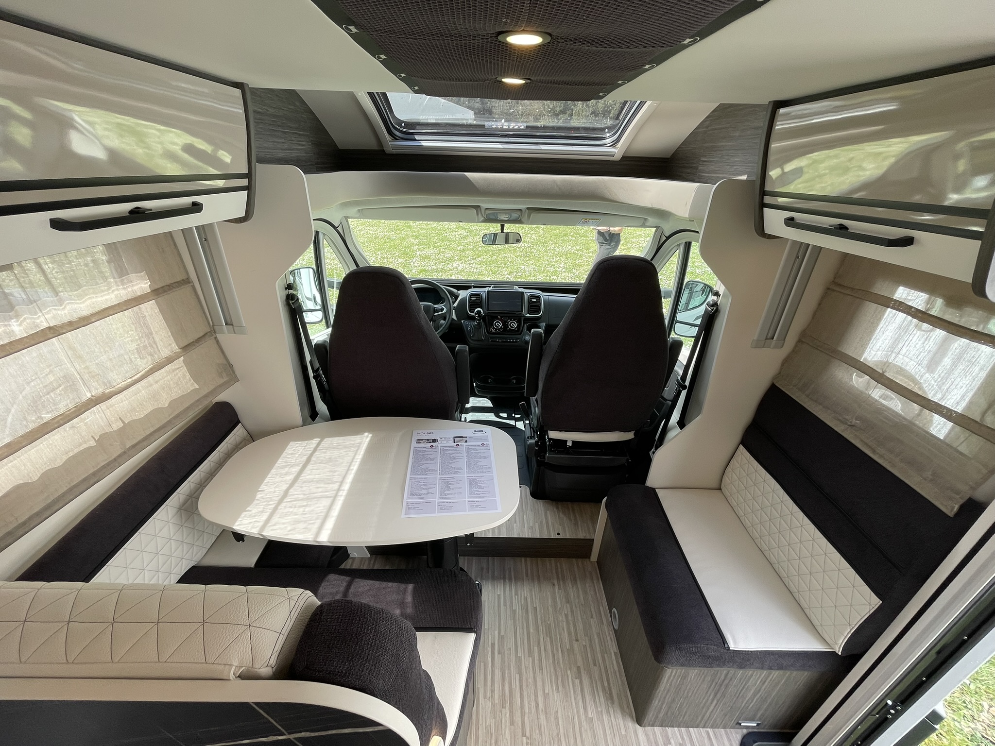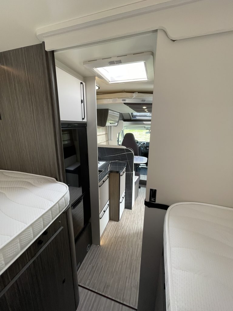 Autocaravana perfilada McLouis MC4 865 de 5 plazas de 6.99 m de largo. Año modelo 2026. Perfilada con cama basculante de menos de 7 metros de longitud con dos camas gemelas, con una de las 2 camas de 2 metros. Con puerta de entrada XL de dos puntos con cierre centralizado, ventanilla fija y mosquitera, baño de volumen variable y camas gemelas convertibles en maxi cama doble.