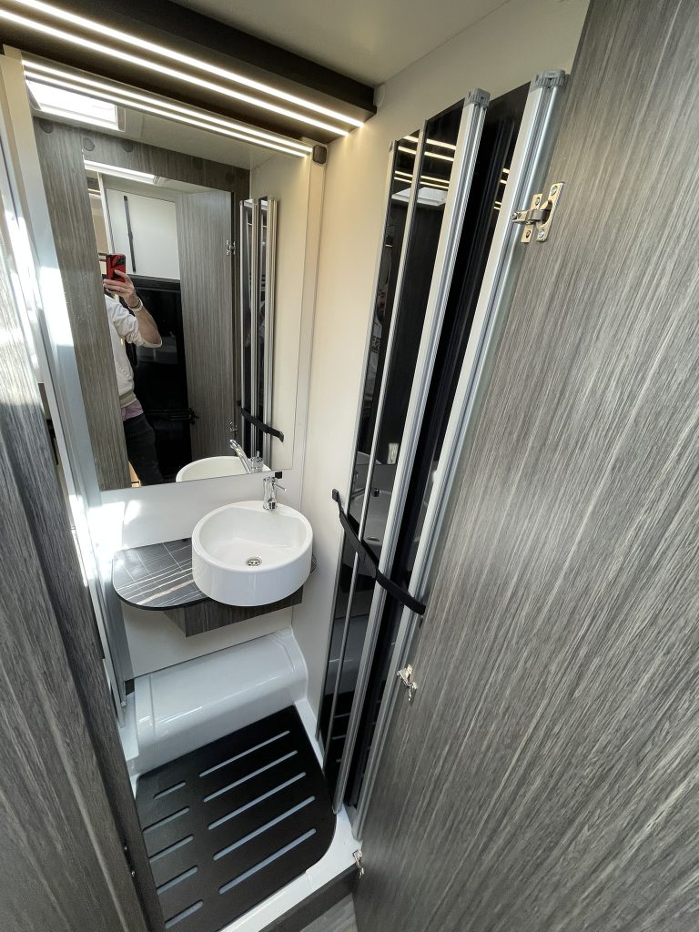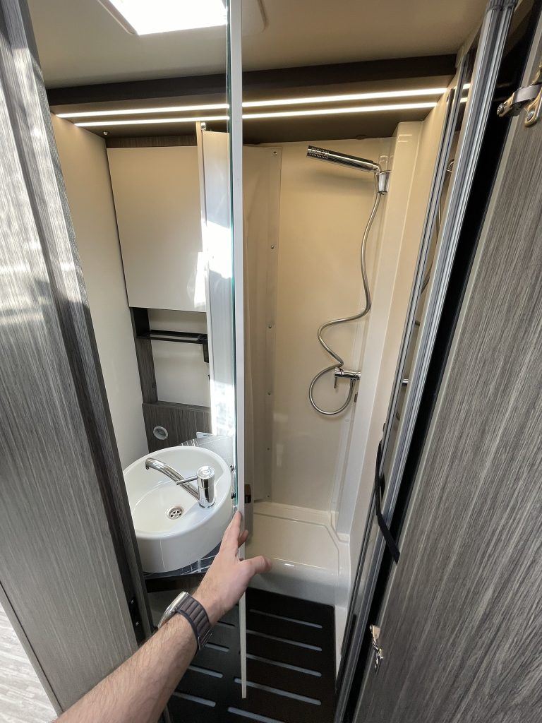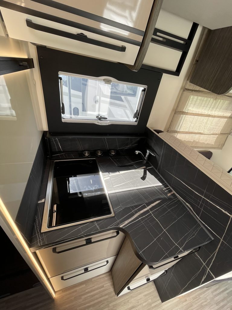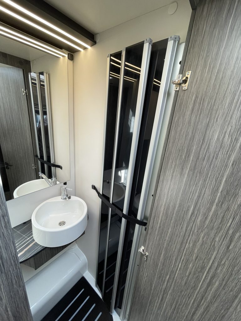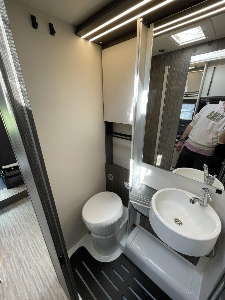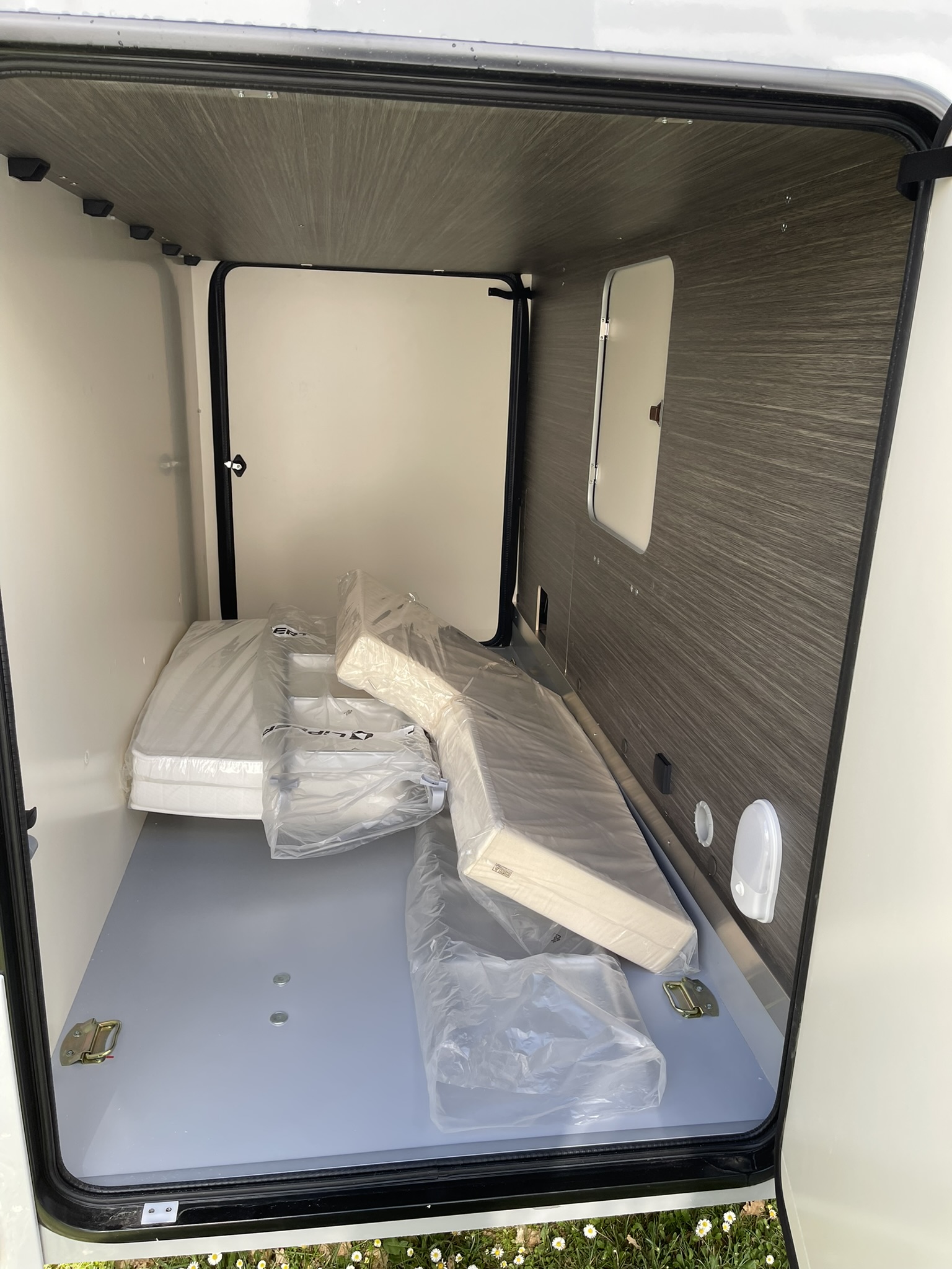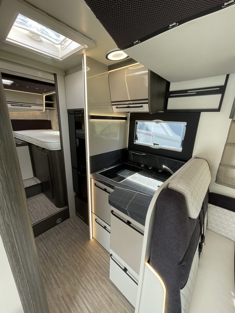 Autocaravana perfilada McLouis MC4 865 de 5 plazas de 6.99 m de largo. Año modelo 2026. Perfilada con cama basculante de menos de 7 metros de longitud con dos camas gemelas, con una de las 2 camas de 2 metros. Con puerta de entrada XL de dos puntos con cierre centralizado, ventanilla fija y mosquitera, baño de volumen variable y camas gemelas convertibles en maxi cama doble.
