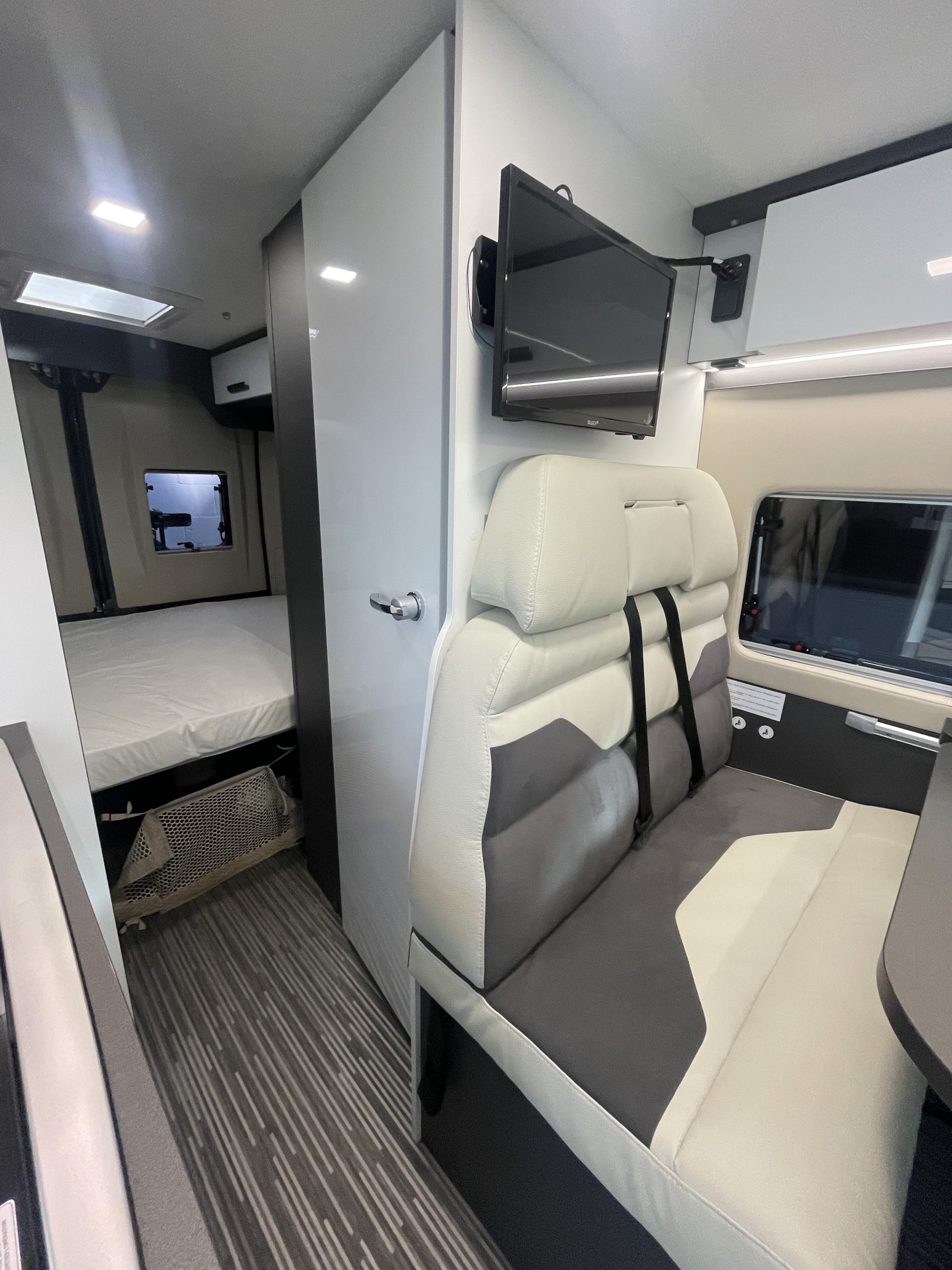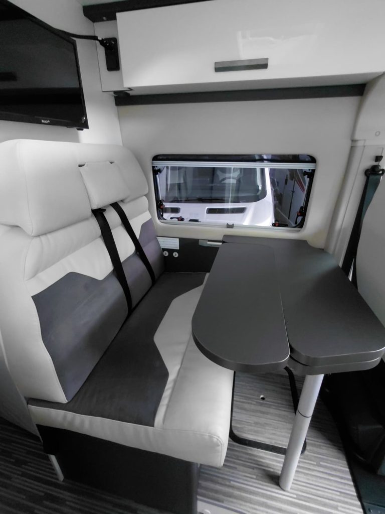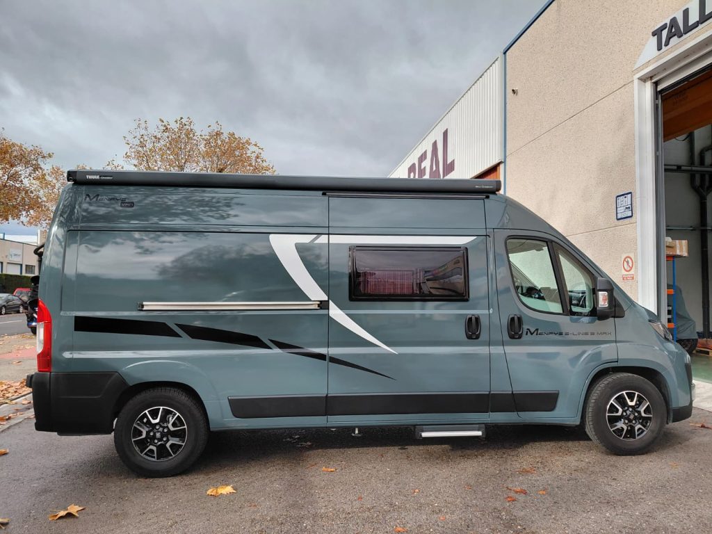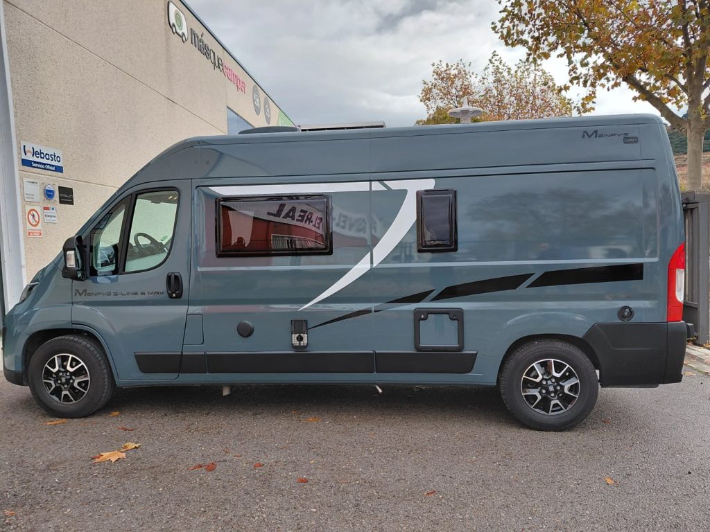 Furgoneta Camper McLouis Menfys S-Line 3 Maxi de Ocasión. Con 4 plazas y 5,995 m de largo. Dispone de 2 camas  de matrimonio en la parte trasera. Año 2025