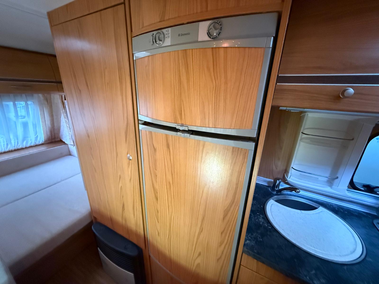 En perfecto estado ,con una longitud total de 7,236m y altura de 2.54m . Con una cama matrimonial al fondo. 2 literas individuales de 80 y salón convertible en otra cama doble. Equipada con muchos extras como Mover ALKO, Frigorífico XXL, Toldo Carvanstore …